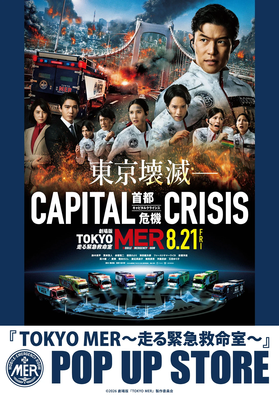 劇場版『TOKYO MER~走る緊急救命室~CAPITAL CRISIS』の公開を記念して、『TOKYO MER~走る緊急救命室~』のPOP UP STOREが、東京・名古屋・大阪で開催決定!