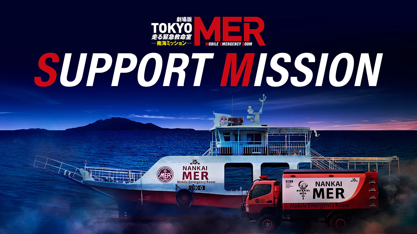 劇場版『TOKYO MER~走る緊急救命室~南海ミッション』の公開にあわせて、 全国各地の企業・ブランドとタイアップした【サポートミッション】を展開中! 命を救うために走り続ける『TOKYO MER』の想いに共感し、 応援の声を届けてくださる企業の皆さまをご紹介します。